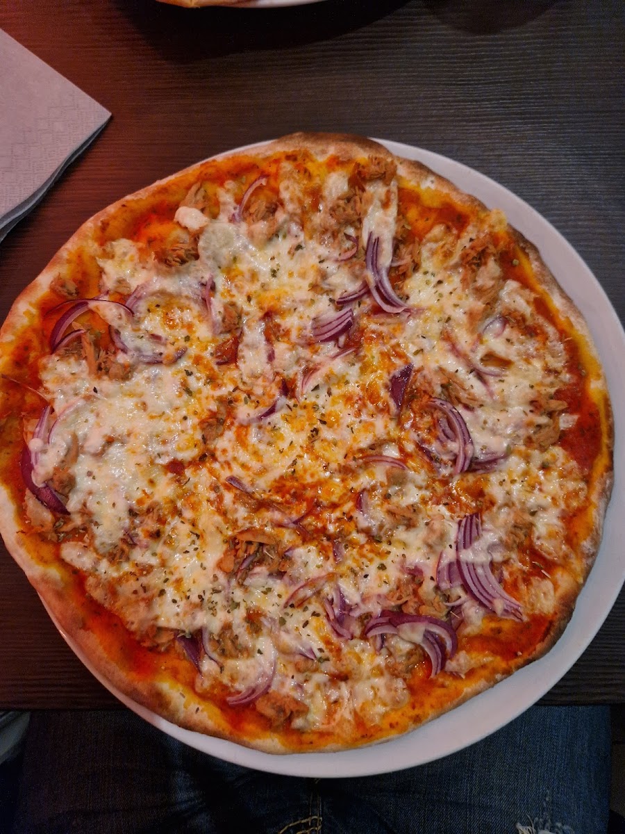 One of the restaurant’s standout dishes is the Pollo Curry, a flavorful chicken curry that perfectly balances spices and creaminess. It’s a unique offering that pairs well with the cozy, inviting atmosphere of the restaurant. If you’re in the mood for pizza, Cucina Di Da Vinci Oldenburg does not disappoint. Their Thunfisch Pizza is a local favorite, loaded with fresh tuna, creating a delightful contrast with the crispy crust and melted cheese. Another pizza option that’s guaranteed to please is the Salami Pizza, featuring a perfect combination of savory salami and rich tomato sauce.